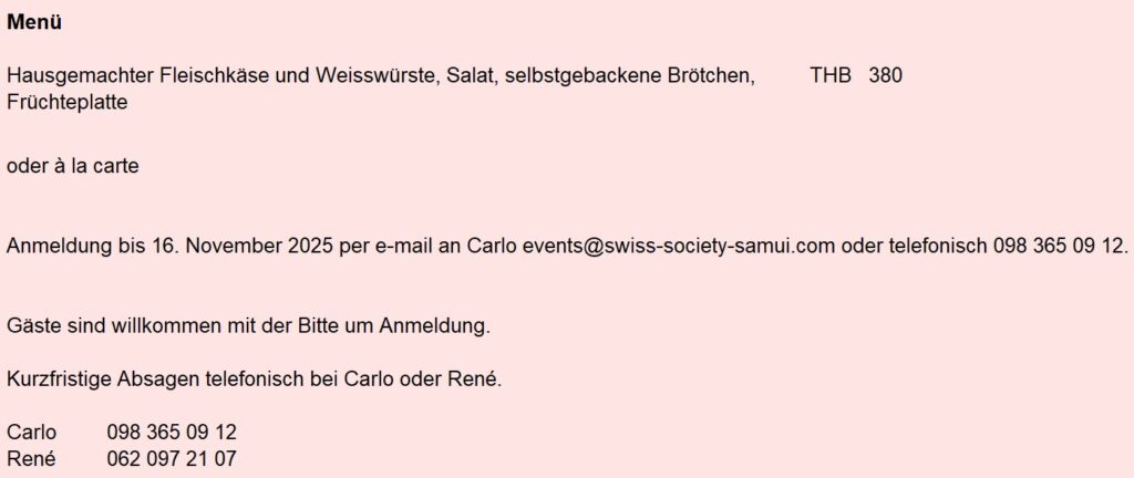 Monatshöck am 19. November um 18:30 im Homestay Samui